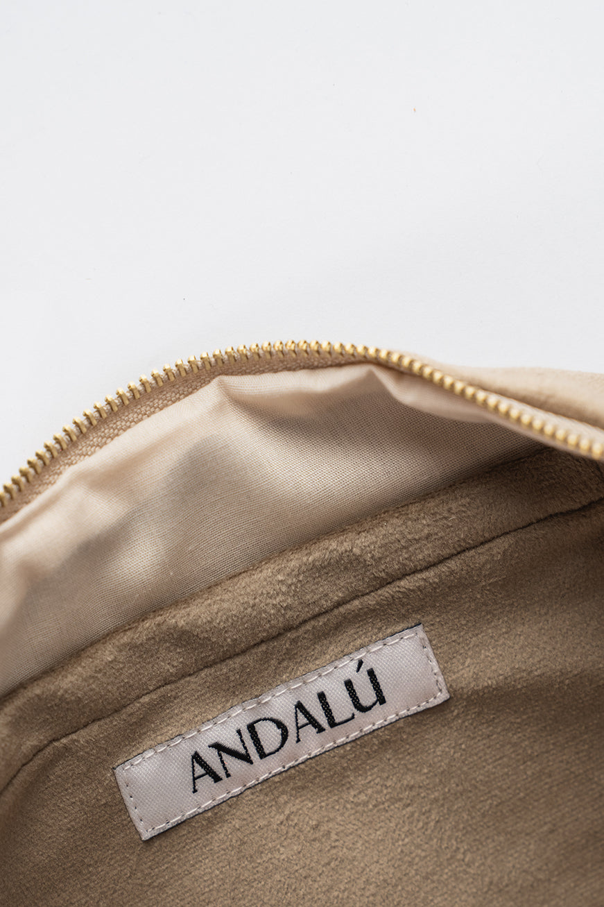 Elegante, llamativa y con movimiento propio. La Flamenco Beige es una cartera de mayor tamaño, pensada para acompañarte con presencia y estilo en cada momento.