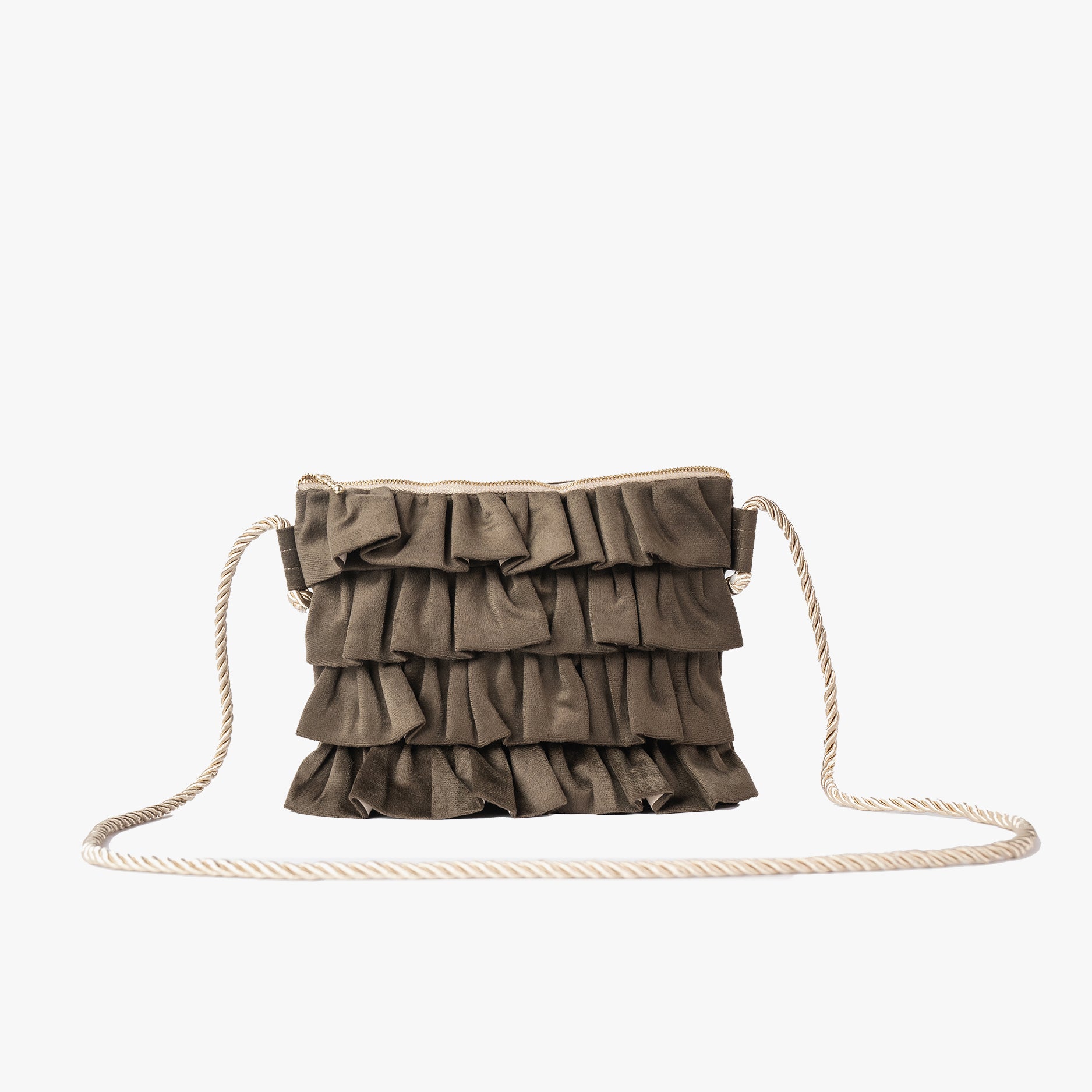 Su diseño con cuatro vuelos frontales crea un efecto visual dinámico y sofisticado, inspirado en el ritmo y la fuerza del baile flamenco. Su cordón dorado aporta un contraste moderno y distintivo, elevando aún más su carácter único. Espaciosa y cómoda, es ideal para llevar más que lo esencial. Además, cuenta con un bolsillo interior para mantener todo en orden.