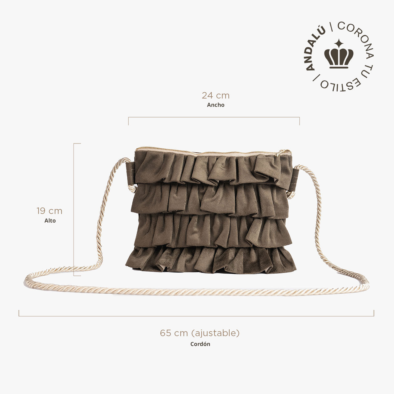 Elegante, llamativa y con movimiento propio. La Flamenco Café es una cartera de mayor tamaño, pensada para acompañarte con presencia y estilo en cada momento.