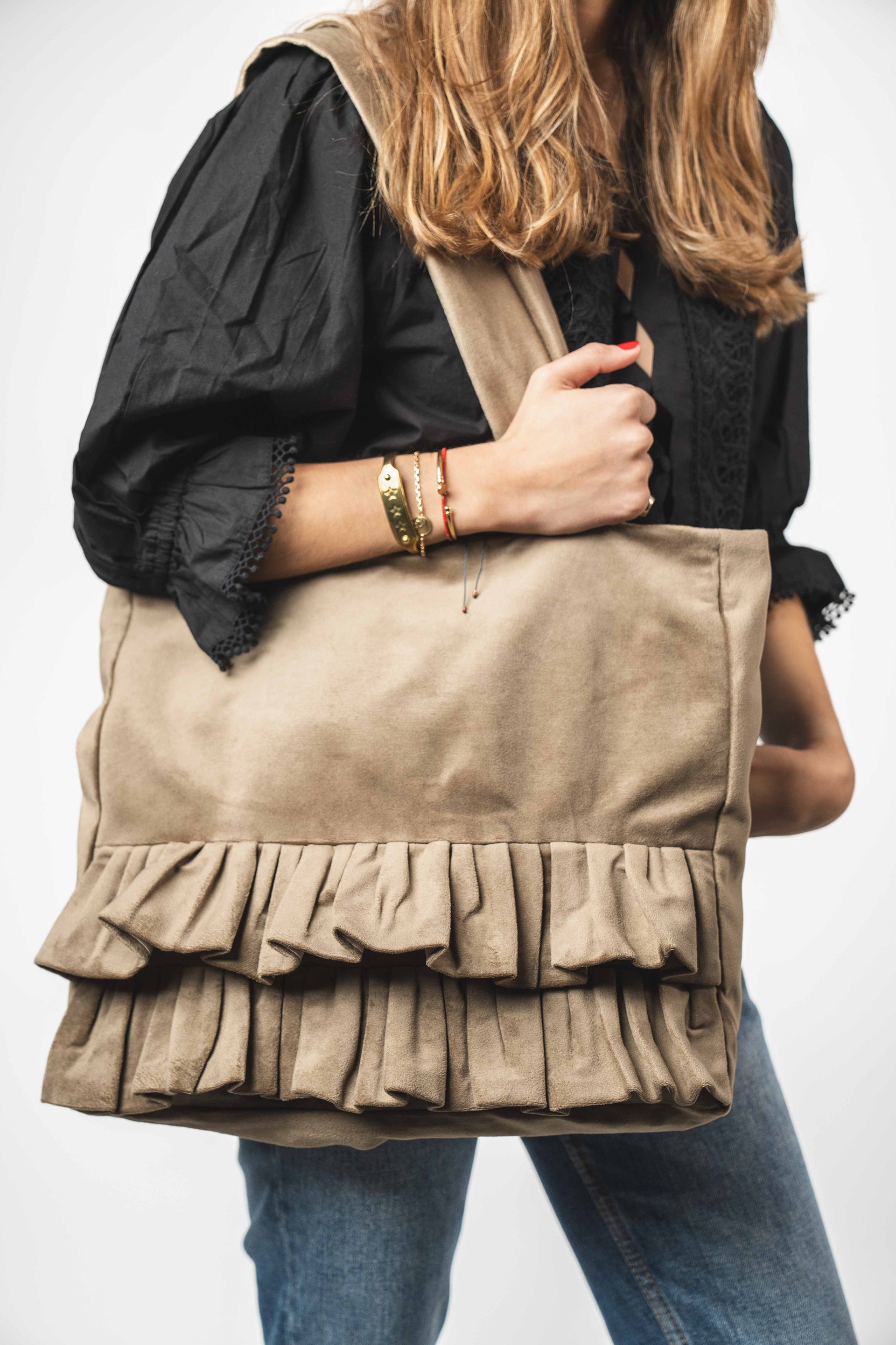 Su diseño incorpora dos vuelos en el exterior que le aportan movimiento y originalidad, mientras que sus tirantes largos permiten llevarla cómodamente al hombro. En su interior tendrás dos bolsillos: uno con cierre de 20 x 20 cm y otro especial para guardar el celular, lo que permite mantener tus esenciales organizados. Además, cuenta con el espacio perfecto para llevar un notebook, cuadernos y objetos de tamaño y peso similar.