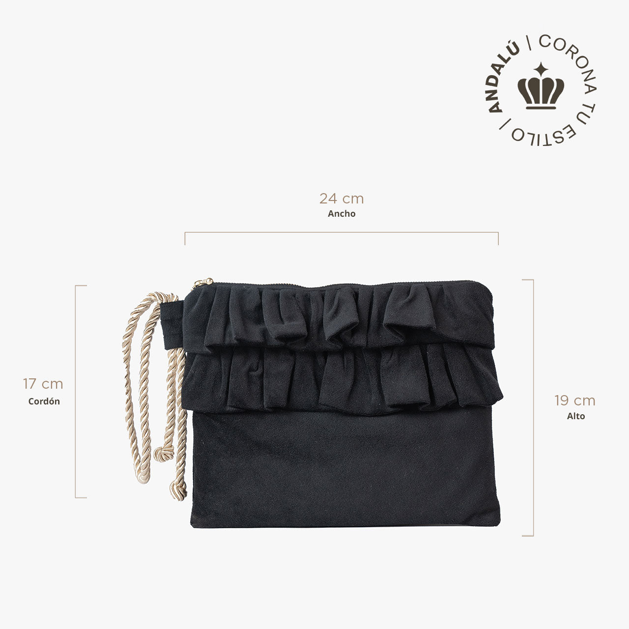Delicada, práctica y con alma andaluza. La Sevillana Negra es un clutch que destaca por su diseño simple pero con carácter, ideal para quienes valoran la elegancia en los detalles.